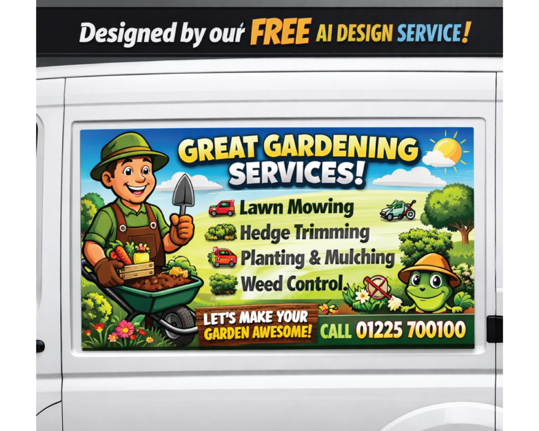 All design options allow you to include your existing logos and images. Want something fresh? Our FREE AI design service gives access to millions of professional images and logo concepts, ready to be adapted to your business. Whether you need bold branding, sleek corporate styling or something fun and creative — we’ve got you covered.